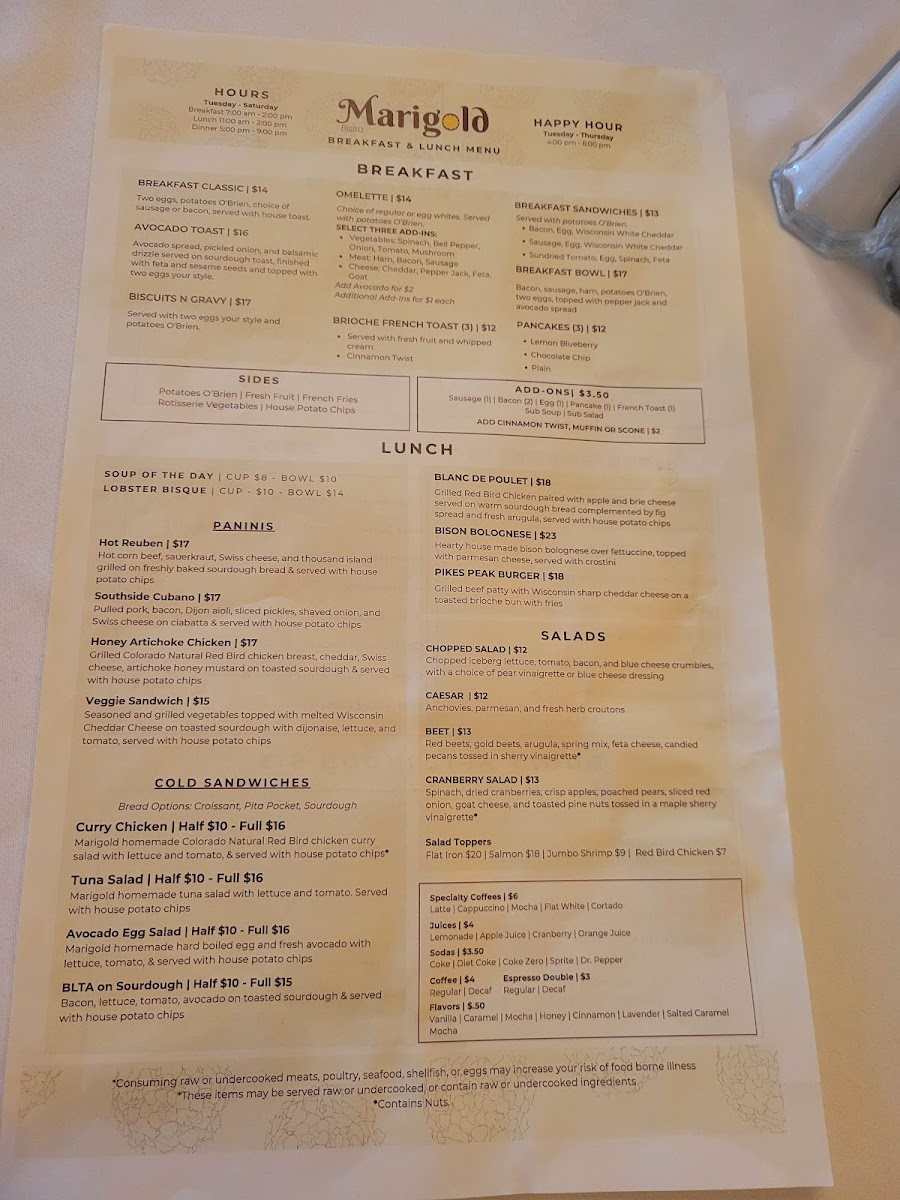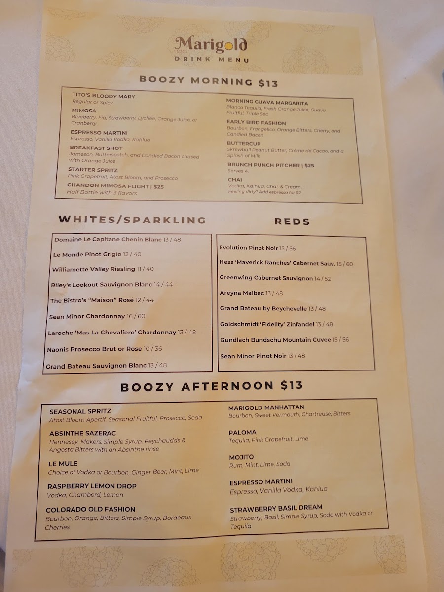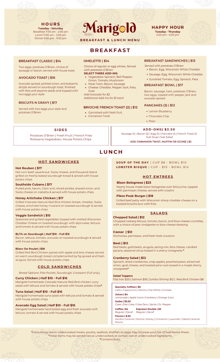 Marigold Bistro Menu